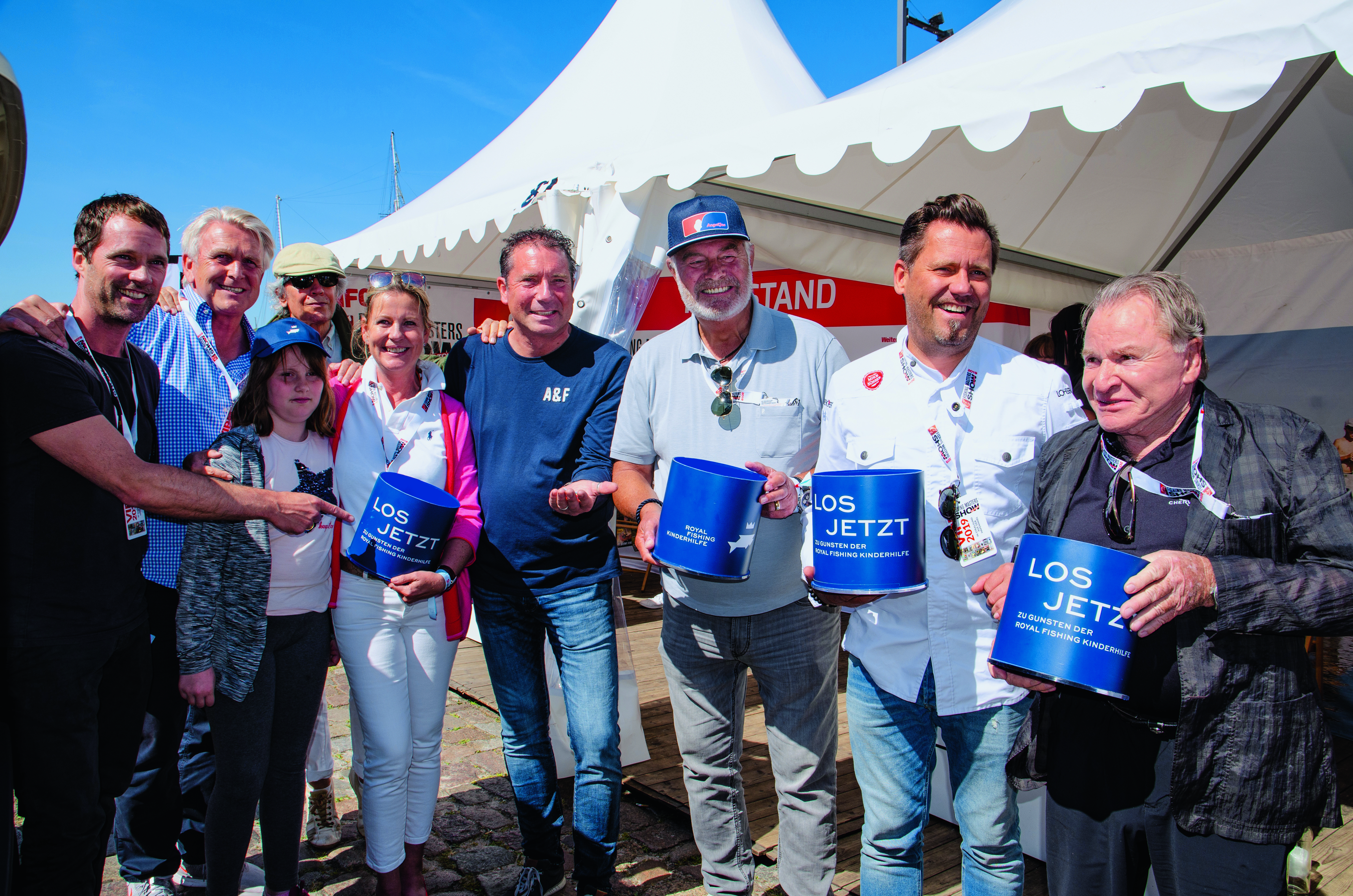 Angelfreunde und Unterstützer der Royal Fishing Kinderhilfe: Francis Fulton-Smith, Werner Schulze-Erdel, Fritz Wepper, Professor Werner Mang und Bernd Herzsprung (von links)
